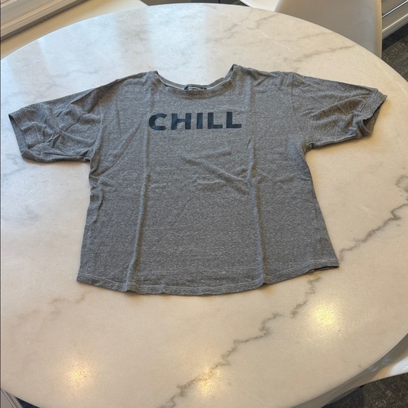Casual gray tee with bold 'Chill' lettering. Perfect for everyday wear. 24” long with 20” bust. Worn once. Great condition