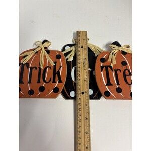 This product is a set of two medium-sized wooden free-standing signs in the shape of pumpkins, perfect for Halloween and fall decor. The signs are multicolor with a matte finish and are designed in a horizontal orientation. They are part of a seasonal collection and are suitable for teens and adults. The signs are original and not handmade, making them a unique and cozy addition to any room during the autumn season.