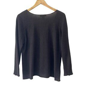 Sigred Olsen Tunic Sweater V Neck Thin Knit Linen Cotton Blend Black Size L