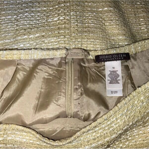 Sigrid Olsen, 10, yellow and white tweed, fully lined rear vent, zip button loop closure, A-line skirt.