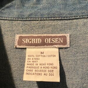 Sigrid Olsen 100% Cotton Blue Embroidered Shirt