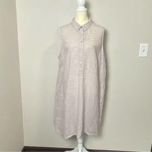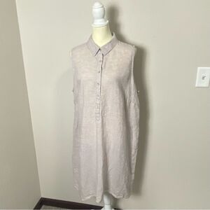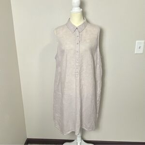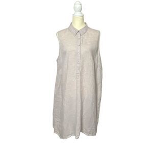 Sigrid Olsen 100% Linen Beige Sleeveless Beachy Shirt Dress Women's Size 1X