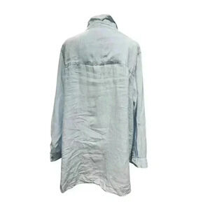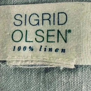 Sigrid Olsen 100% Linen Blue V-Neck Light Blue Blouse Button Down Shirt Size XL