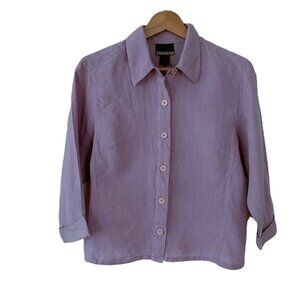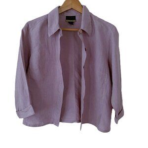 Sigrid Olsen 100% Linen Button Down Top Size 10 Vintage
