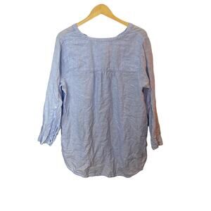 Sigrid Olsen 100% Linen Button Up Tunic Top Size 1X Blue Lagenlook Roll Tab