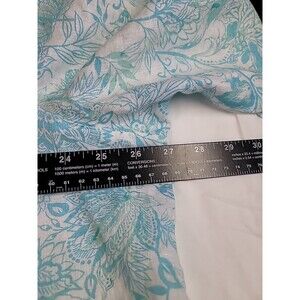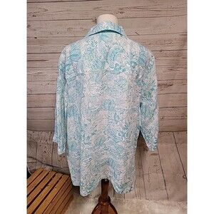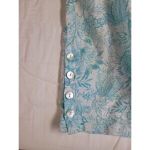 Sigrid Olsen women's 2X 100% linen pullover blouse. 3/4 sleeve, 4 working buttons on each side, v neckline, and collar. Pretty teal floral pattern. A perfume smell is noted.