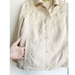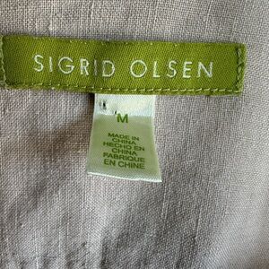 Sigrid Olsen 100% Linen Jacket Khaki Size Medium Pockets Beach Coastal Natural