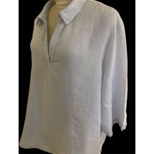 Sigrid Olsen 100% Linen Lt. Blue/Chambray Top 2X Tunic Plus Size