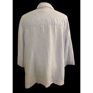Just beautiful 100% linen tunic by Sigrid Olsen, size 2X. Light blue/Chambray. Mother of pearl buttons on side seams. 3/4 length sleeves. Machine washable.