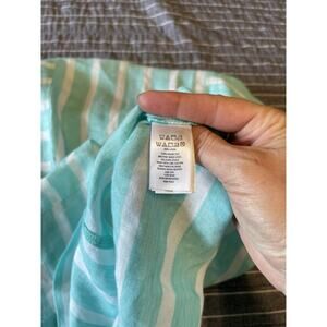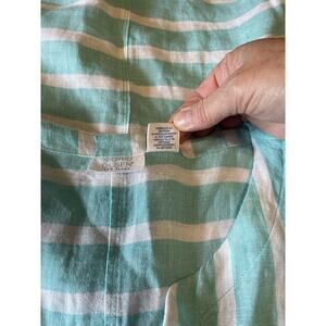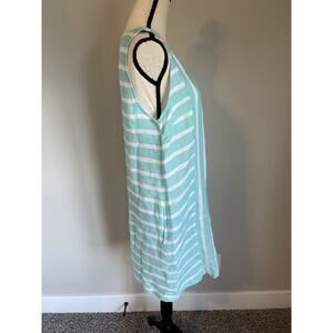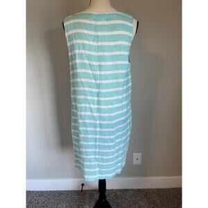 Sigrid Olsen 100% Linen Shift Dress Teal White Stripe Pockets Sleeveless Medium