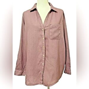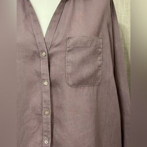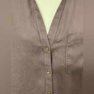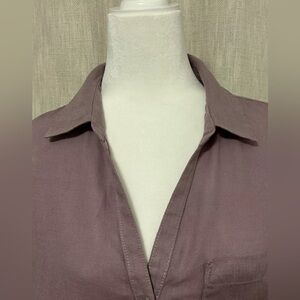 Sigrid Olsen 100% Linen Top Womens Medium Button Up Purple SMALL FLAW