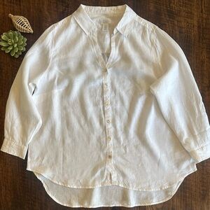 Like new condition with no flaws to note. 100% linen. Shell buttons. Long sleeve that can be worn tabbed up. Perfect spring, and summer every day shirt!