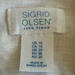 Sigrid Olsen | 100% Linen White Button Down Shirt, Tab Sleeves, Size 1X
