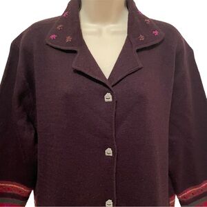 Sigrid Olsen 100% Wool Women's Knit Cardigan Sweater Brown Floral.