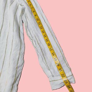 Sigrid Olsen 100% linen striped blouse features long sleeves turn-up sleeves L