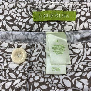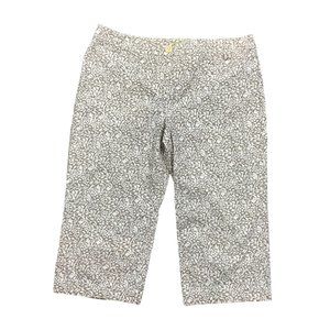 Sigrid Olsen - brown/white floral pattern capri pants. Back pockets.