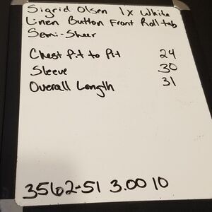 Sigrid Olsen 1X Top White 100% Linen Button Front V Neck Beach Coastal Lagenlook