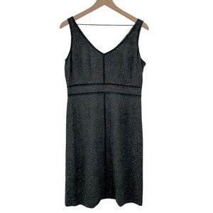 Sigrid Olsen women's two piece dress suit in a dark charcoal gray and black tweed with gorgeous velvet trim detailing. See images for fabric and washing info.