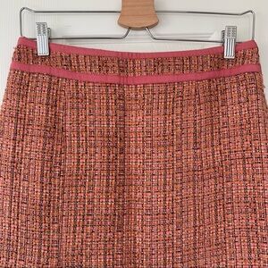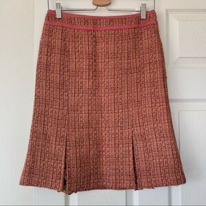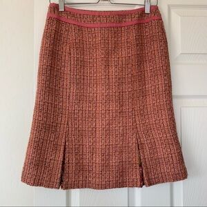 Sigrid Olsen 70s Style Pink Wool Blend Floral Peek A Boo Slit Tweed Skirt Size 2