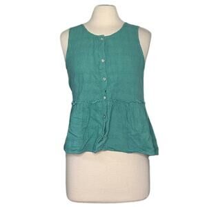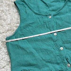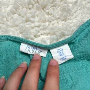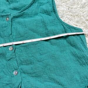 Sigrid Olsen Aqua Beachy Button Front Fit and Flare Muslin Texture Tank 101