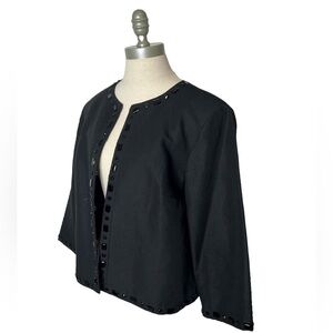 Sigrid Olsen Black Beaded Linen Cotton Blend Suit Separate Open Jacket Size 14