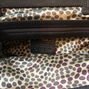 Elegant black leather bag with braided strap. Sleek design with detailed stitching.
