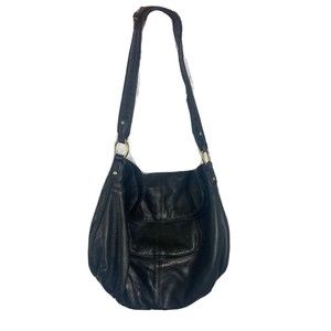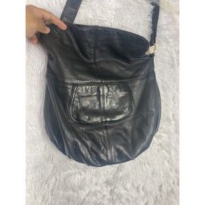 Sigrid Olsen Black Leather Gold Stud Hobo Style Handbag Purse