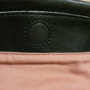 Sigrid Olsen Black Leather Pocketbook. Shoulder bag with magnetic closure. Interior zipper pocket, (2) Open pockets, (2) pen pockets & a key ring holder. Blush pink Interior lining. Bag is approx. 16" wide x 12" top to bottom x 5" wide. Strap is approx. 13" from shoulder to bag.