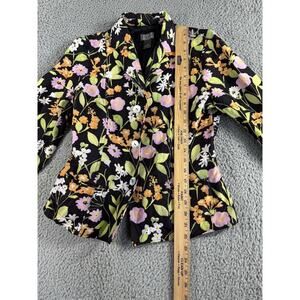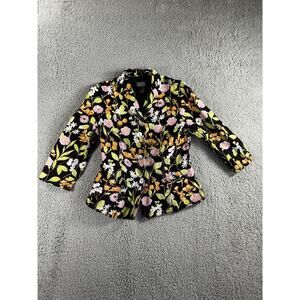 Sigrid Olsen Blazer Women 4 Floral Linen 3/4 Sleeve Jacket Boho Business Casual