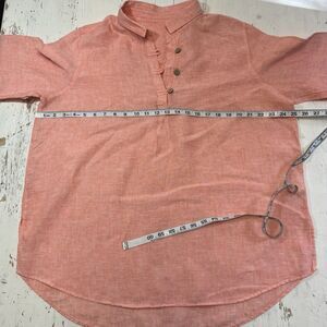 Stunning Sigrid Olsen tunic blouse. Made from 100% linen, this blouse features a relaxed fit, long sleeves, and a collared neckline. The salmon pink color adds a pop of color to your outfit and the solid pattern makes it easy to pair with other clothing items. The button closure adds a classic touch to this stylish piece.