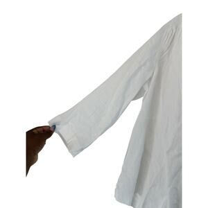 Sigrid Olsen Blouse White Linen Lagenlook V-Neck Relaxed 3/4 Sleeve Medium