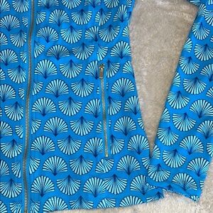 This Sigrid Olsen bomber jacket in a vibrant blue hue features a playful all-over pattern, offering a stylish yet practical addition to your wardrobe. The lightweight design ensures comfort and warmth, making it perfect for casual outings. Its fitted silhouette and stand-up collar add a touch of sophistication to this versatile piece.