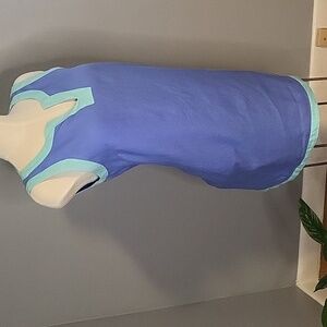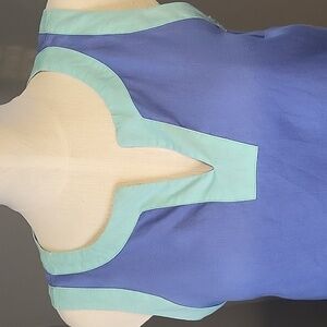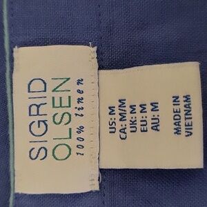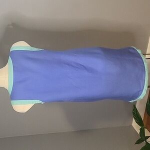 Cute 100% linen Sigrid Olsen sleeveless dress in blue with green trim in size medium.