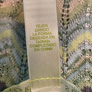 Sigrid Olsen Fine Open Knit Chevron Striped Cardigan Sweater is a gorgeous array of stripes of multi-colored Greens and Tans and adorable Ribbed Knit Scalloped Hem and Cuffs . It is great for casual days at work, school, date night, night out with the girls, and Family Dinner paired with everything from a jeans and sneakers to a skirt and heels.