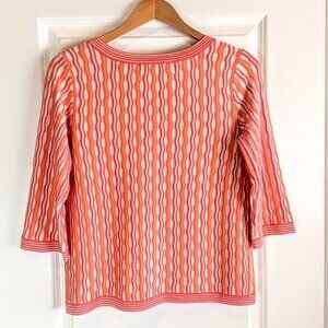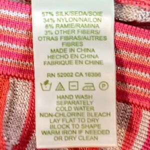 Pretty Corsica gold metallic silk blend cardigan sweater from Sigrid Olsen in orange and pink.
