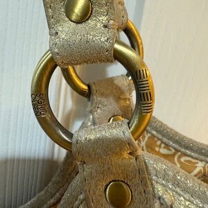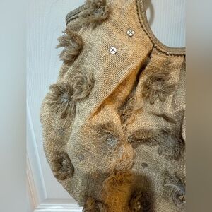 Sigrid Olsen Cotton Metallic Accent Linen Shoulder Bag Slouchy Design 16x10