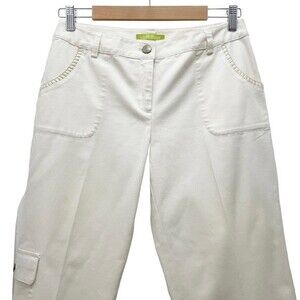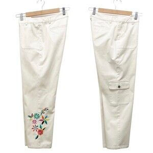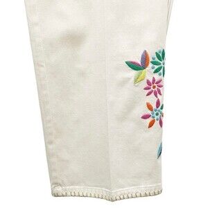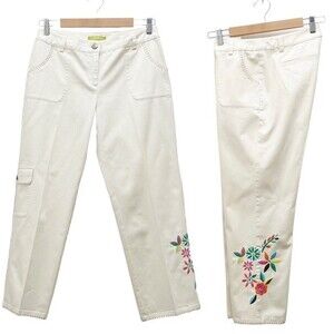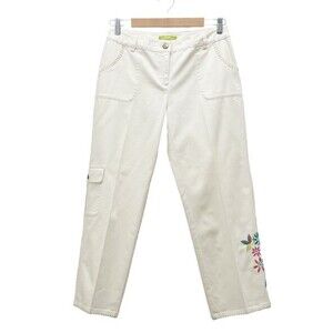 Sigrid Olsen Cream Pants Floral Embroidered Cropped Poet Pant Women’s Size 4