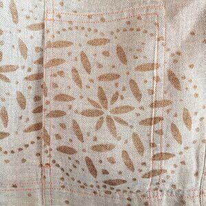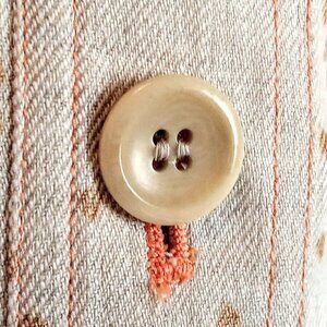 Pure linen button-down jacket in cream and tan with contrast peach topstitching from Sigrid Olsen.