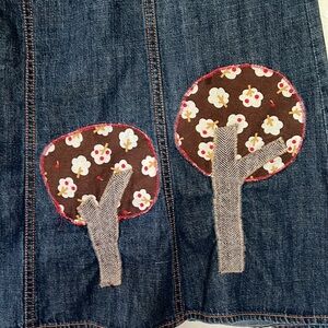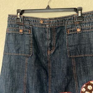 Sigrid Olsen Denim A line Skirt with Custom Patch Embroidered Trees. Sz 8. EUC
