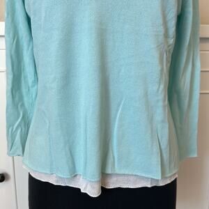 Sigrid Olsen Double Layered Sweater Cotton Rayon 3/4 Sleeve Light Blue M Petite