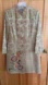 This elegant cream and gold jacket, blazer, light coat by Sigrid Olsen features a sophisticated mandarin collar and a luxurious brocade texture. Its knee-length design and subtle sheen make it perfect for special occasions, adding a touch of refinement to any ensemble.