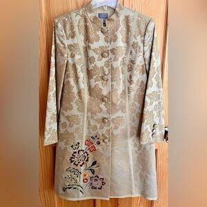 Sigrid Olsen Elegant Embroidered Cream and Gold Brocade Jacket Size 10 Buttons