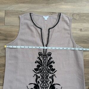 Sigrid Olsen Embroidered Brown Linen Blend Maxi Dress