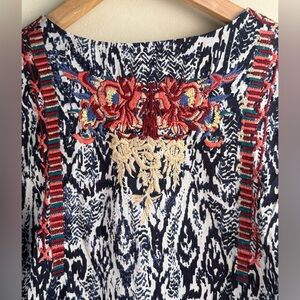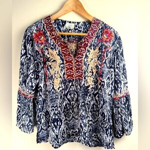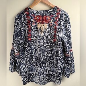 Sigrid Olsen Embroidered Top Blouse M Shirt Long Flared Sleeves Blue Modal Boho