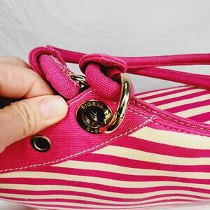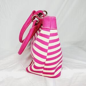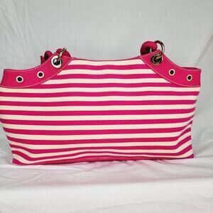 Sigrid Olsen Extra Large Pink & Cream Striped Fabric Tote Bag Shoulder Purse