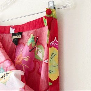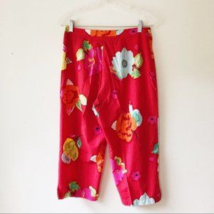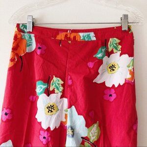 Sigrid Olsen bright red floral cropped pants. Lightweight, side zip closure, oversized flower design. Tag size 8, measured lying flat