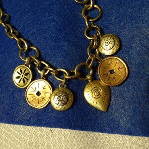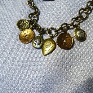 Vintage Sigrid Olsen Gold Tone 18" Charm Necklace. It has 6 different charms around the front of the chain. It has a toggle closure