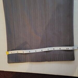 Sigrid Olsen Gray Ladies Pin Striped Pants, Size 14. These sharp slacks are suitable for career, on-the-go, and parties. They feature washable, comfortable fabric, back buttoned pockets, belt loops is made of polyester and rayon material The hem width is approximately 11 inches across, and inseam is approximately 32 inches. These trousers offer an easy-going and relaxed fit.