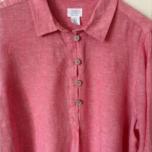 Sigrid Olsen Half Button Closure Linen Tunic Shirt Size 1X