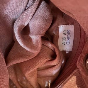 Sigrid Olsen Handmade Macrame Handbag Bamboo Handles Cotton Boho Hippie Peach/Pink